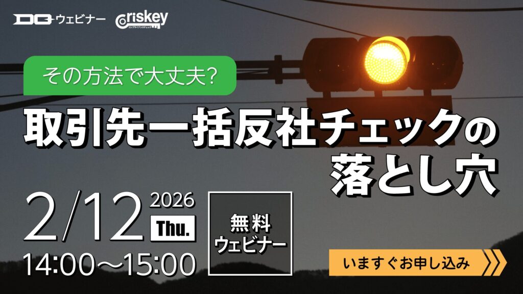 企業のコンプライアンス調査を長年支援してきた弊社ディー・クエストは2026年2月14日(木)14時から、取引先・関係先のコンプライアンス状況を一気に洗い出す「一括反社チェック」に関する無料ウェビナーを開催します。