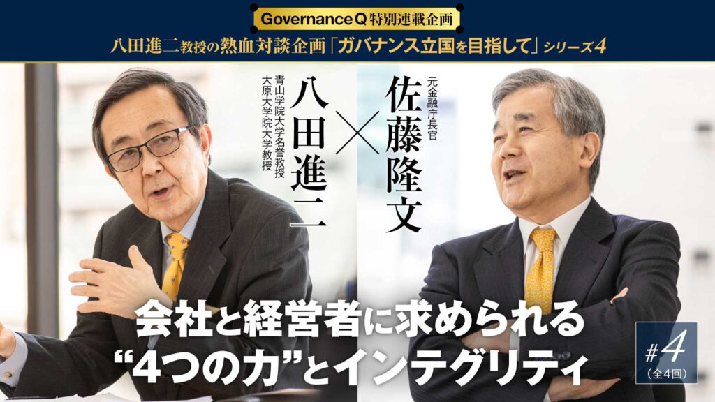 (第4回#3から続く)プロフェッショナル会計学が専門でガバナンス界の論客、八田進二・青山学院大学名誉教授が各界の注目人物とガバナンスをテーマに縦横無尽に語る大型対談連載。シリーズ第4回のゲストは金融庁長官、そして東京証券取引所自主規制法人(現・日本取引所自主規制法人)理事長を務めた佐藤隆文氏。最終回の#4記事では、多様化する企業不祥事をタイプ別に整理すると同時に、いかに不祥事と立ち向かうか、経営者、そして会社そのものに求められる“力”を示す。